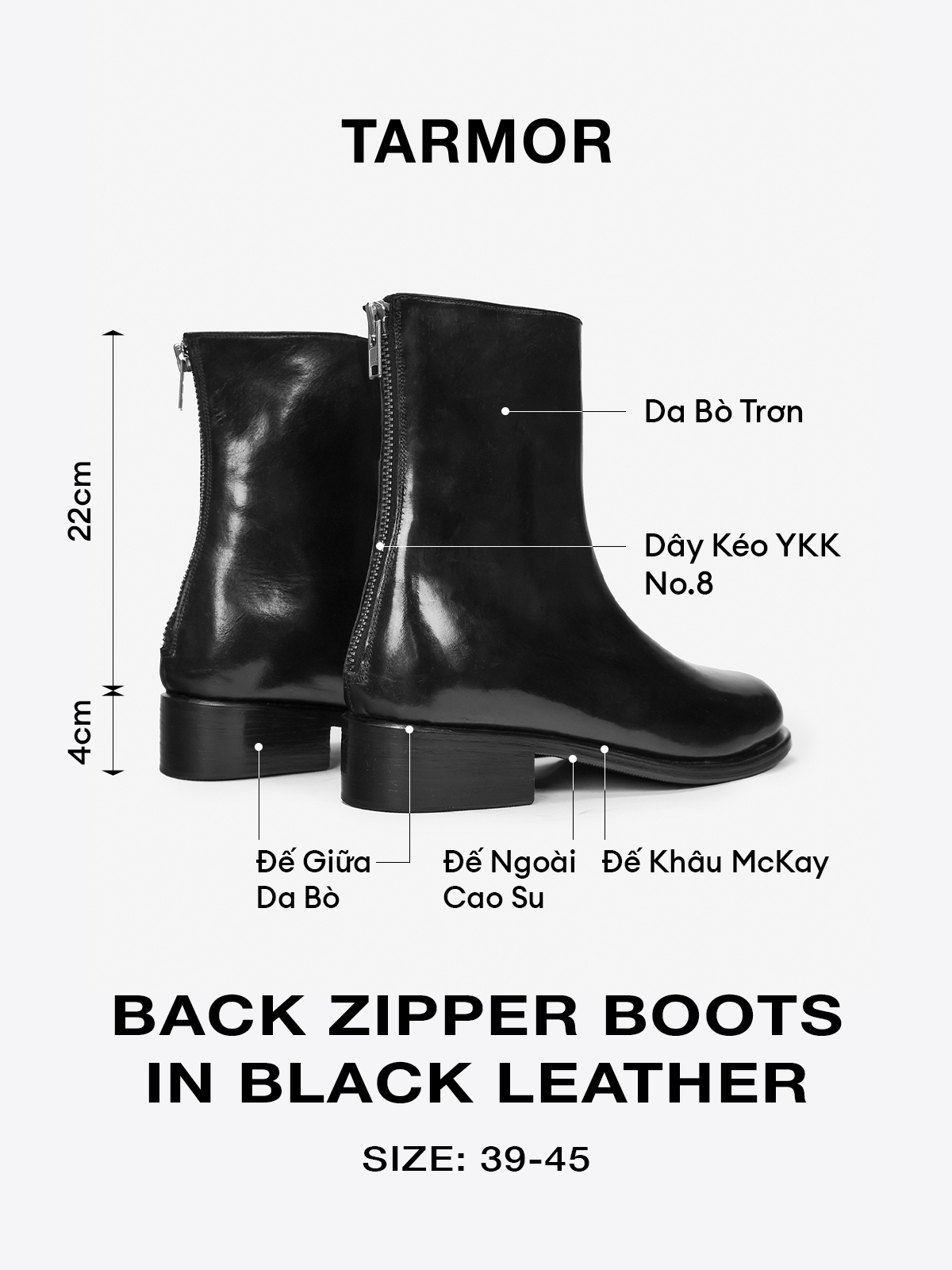 BACK ZIPPER BOOTS IN BLACK LEATHER