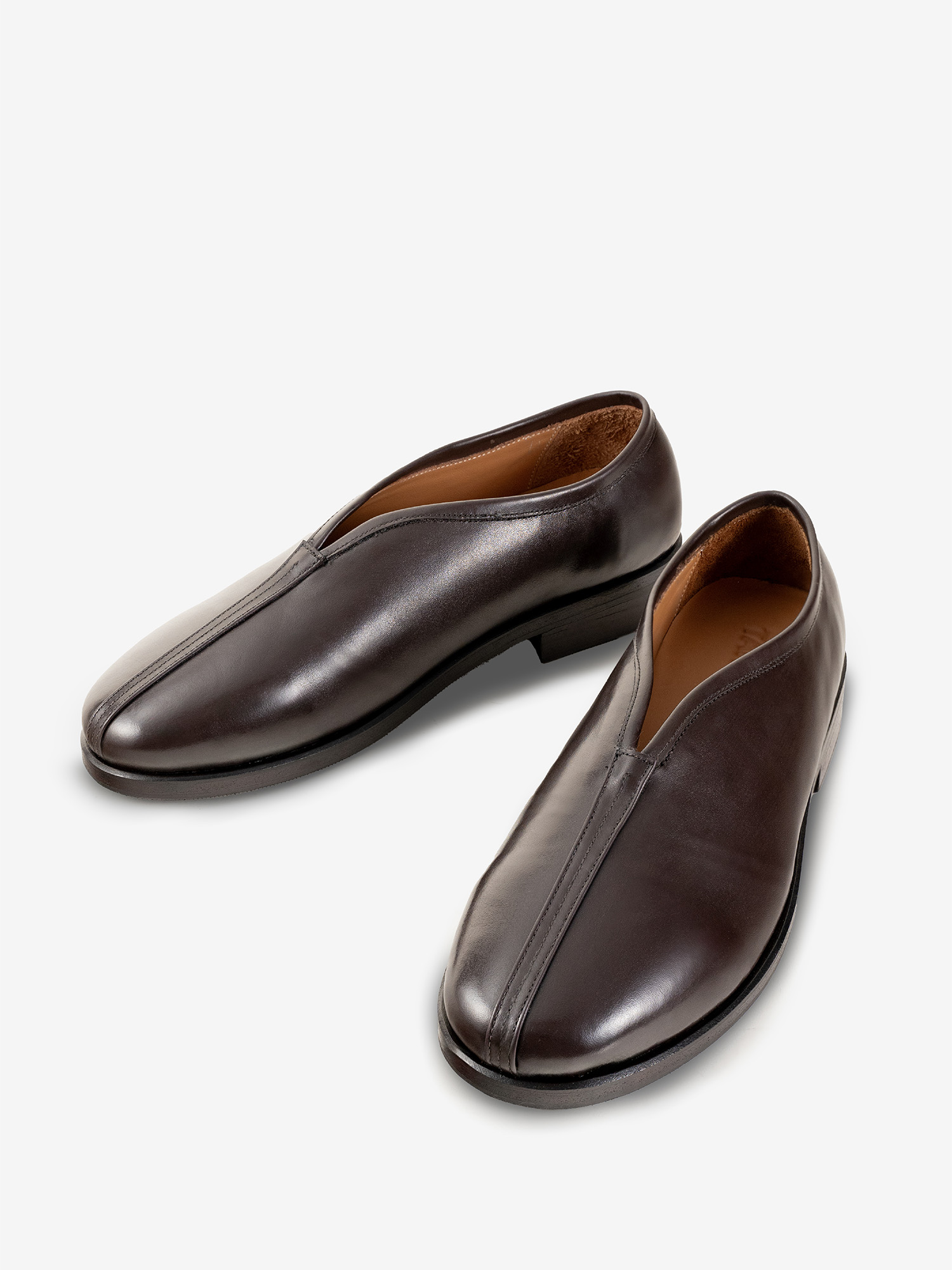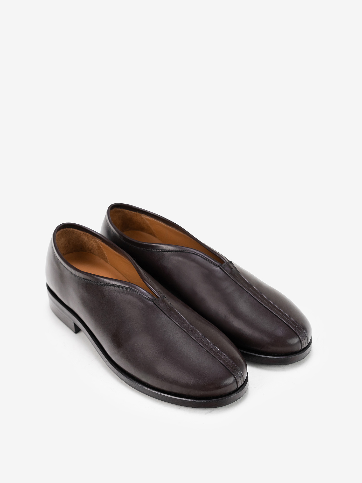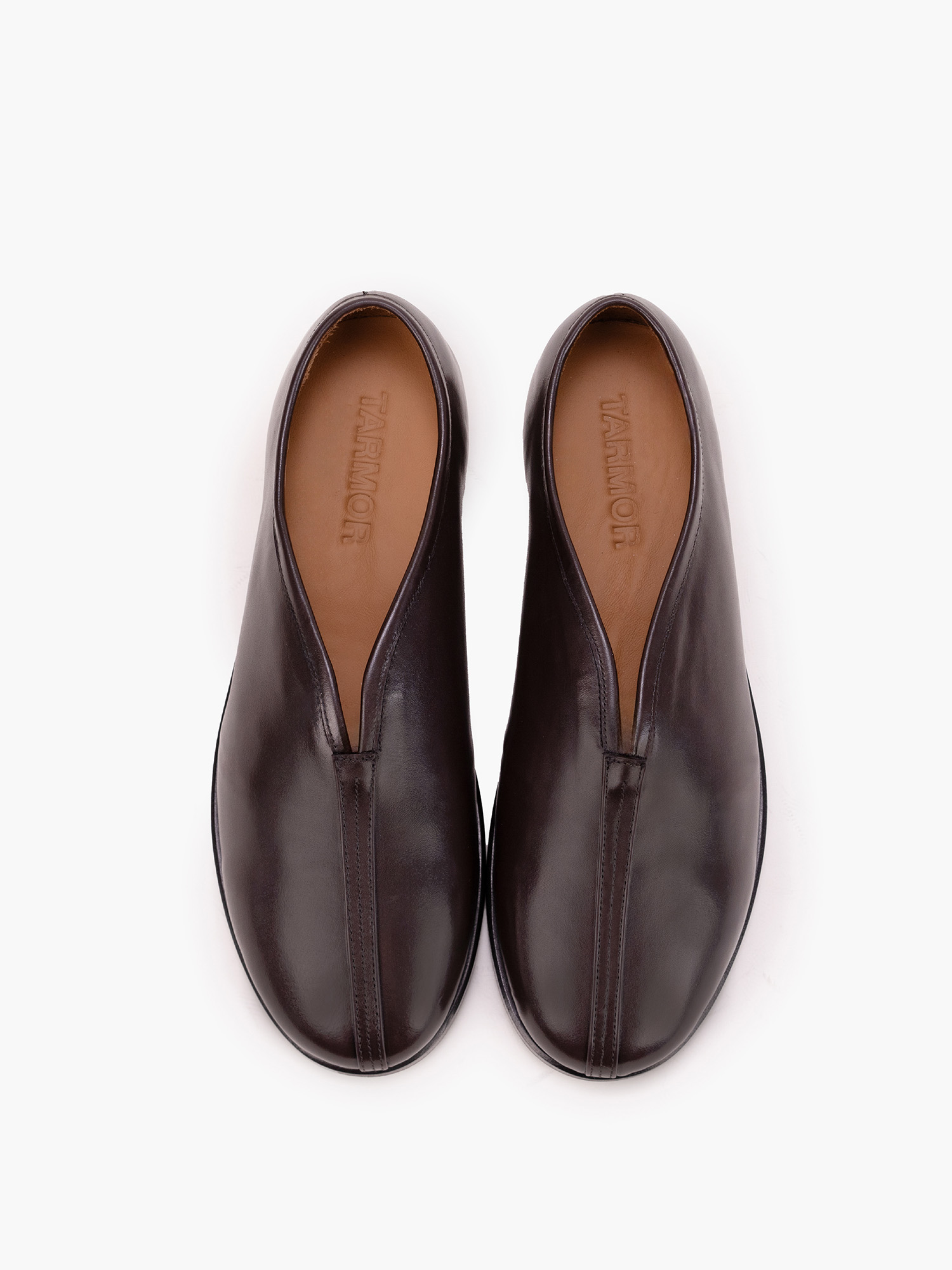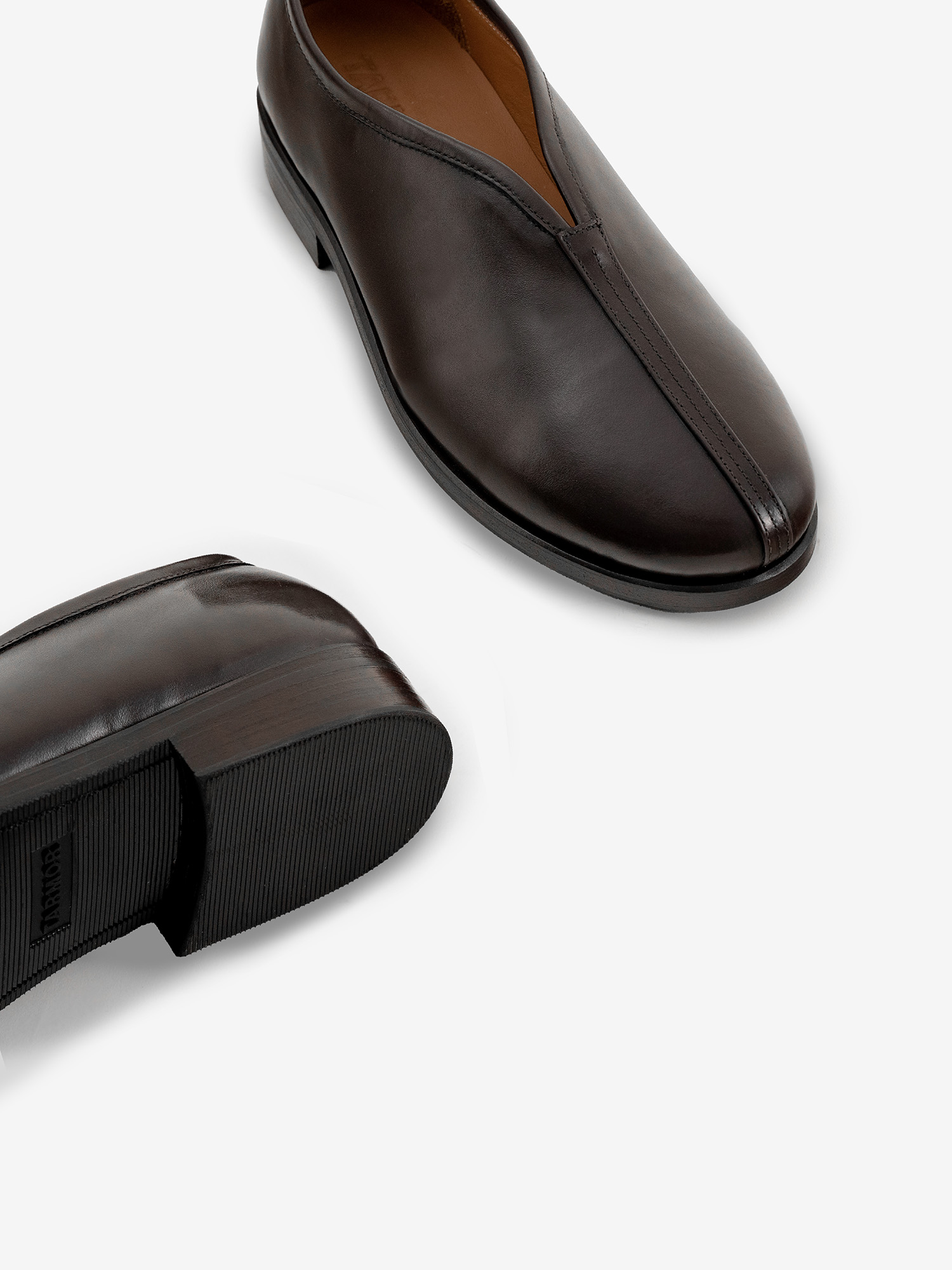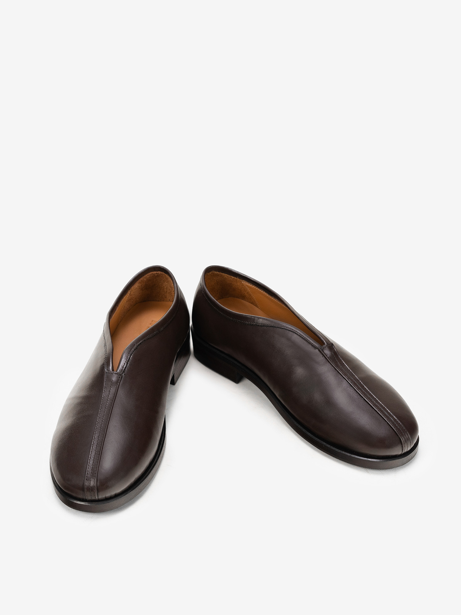 BROWN LEATHER LOAFER WITH CENTRAL SEAM