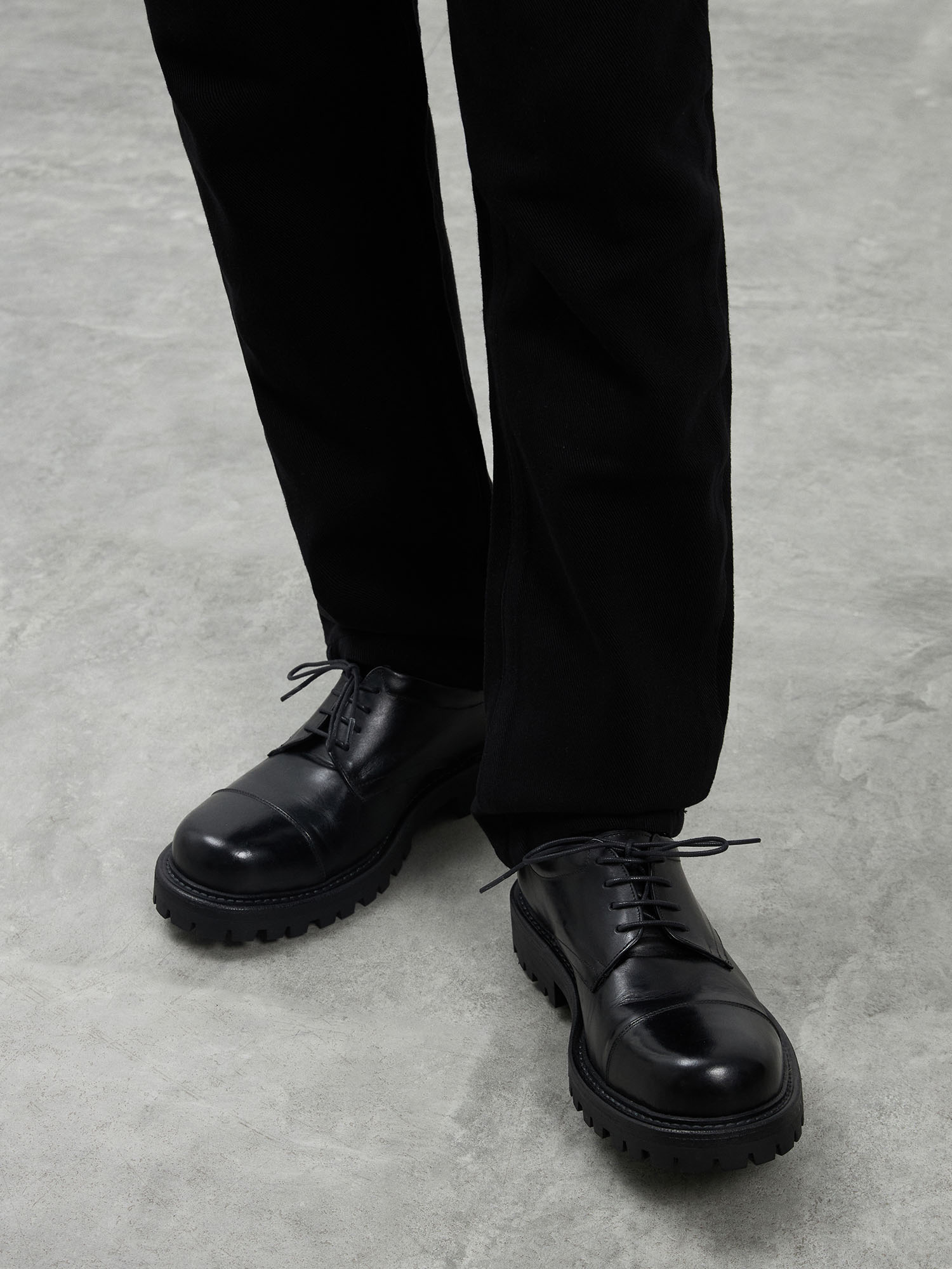 • Da ngoài (Upper): Da Bò (Leather) • Lót trong (Lining): Da Bò (Leather) • Đế trung gian (Midsole): Da Bò (Leather) • Đế (Outsole): Cao Su (Rubber) • Cấu trúc (Construction): Đế khâu McKay/Blake