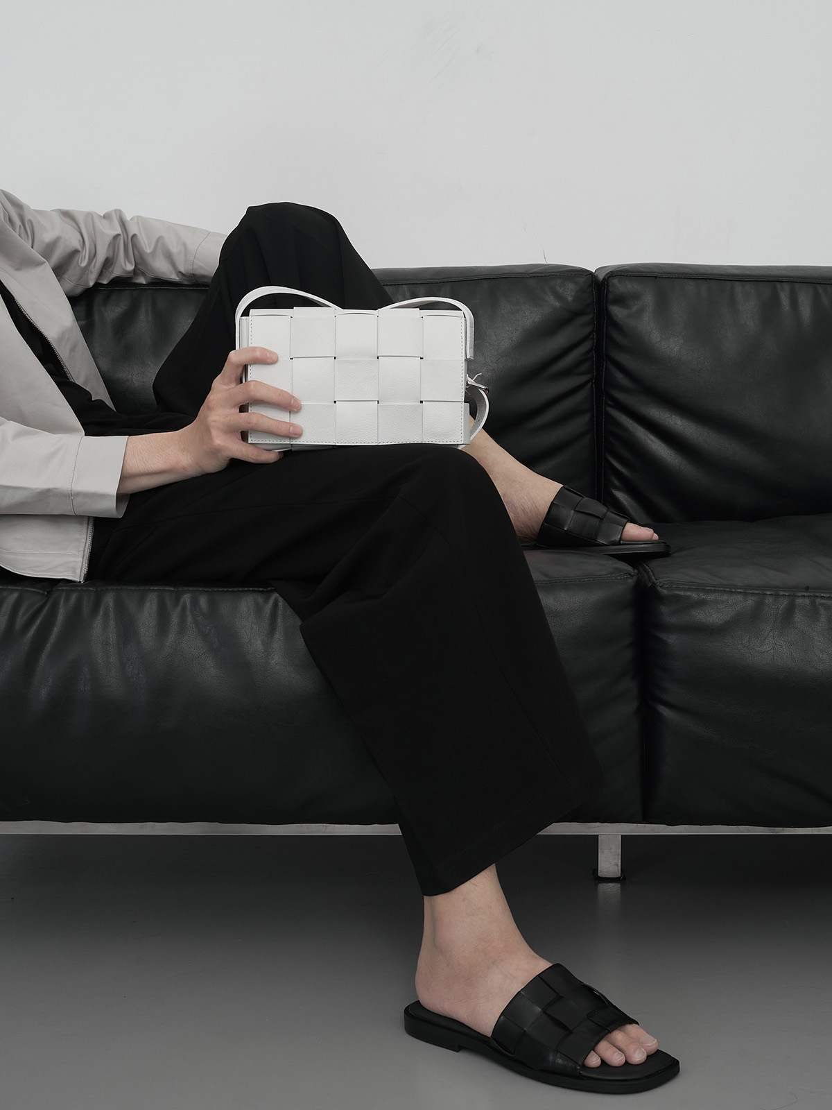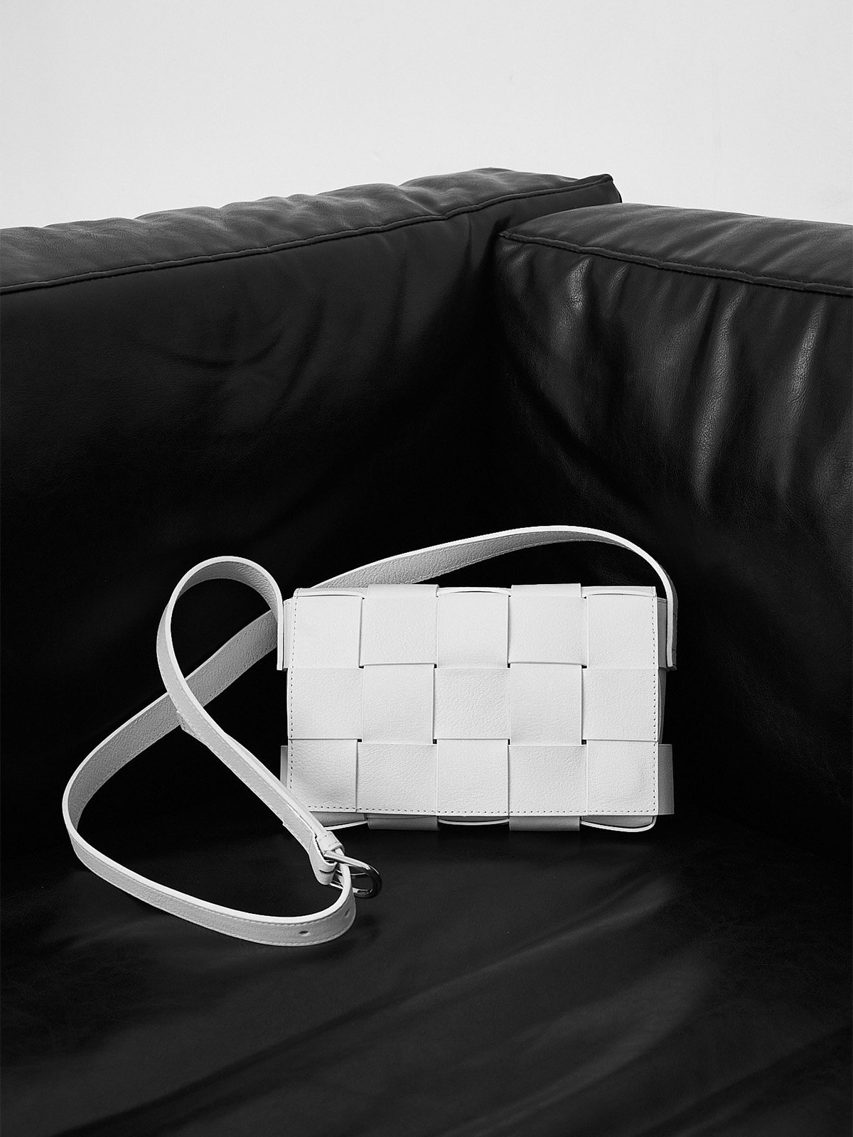 INTERLAY LEATHER SHOULDER BAG IN WHITE
