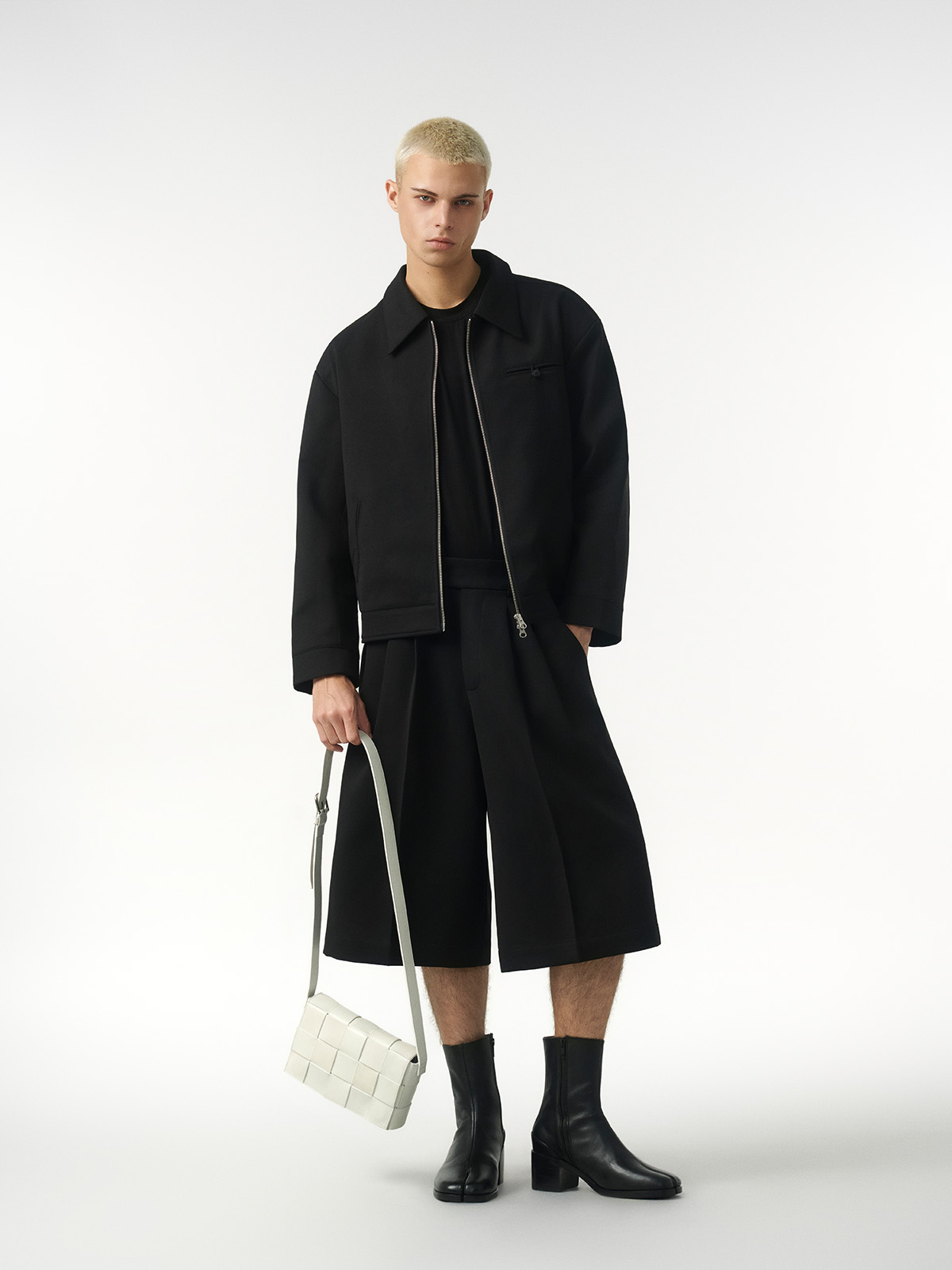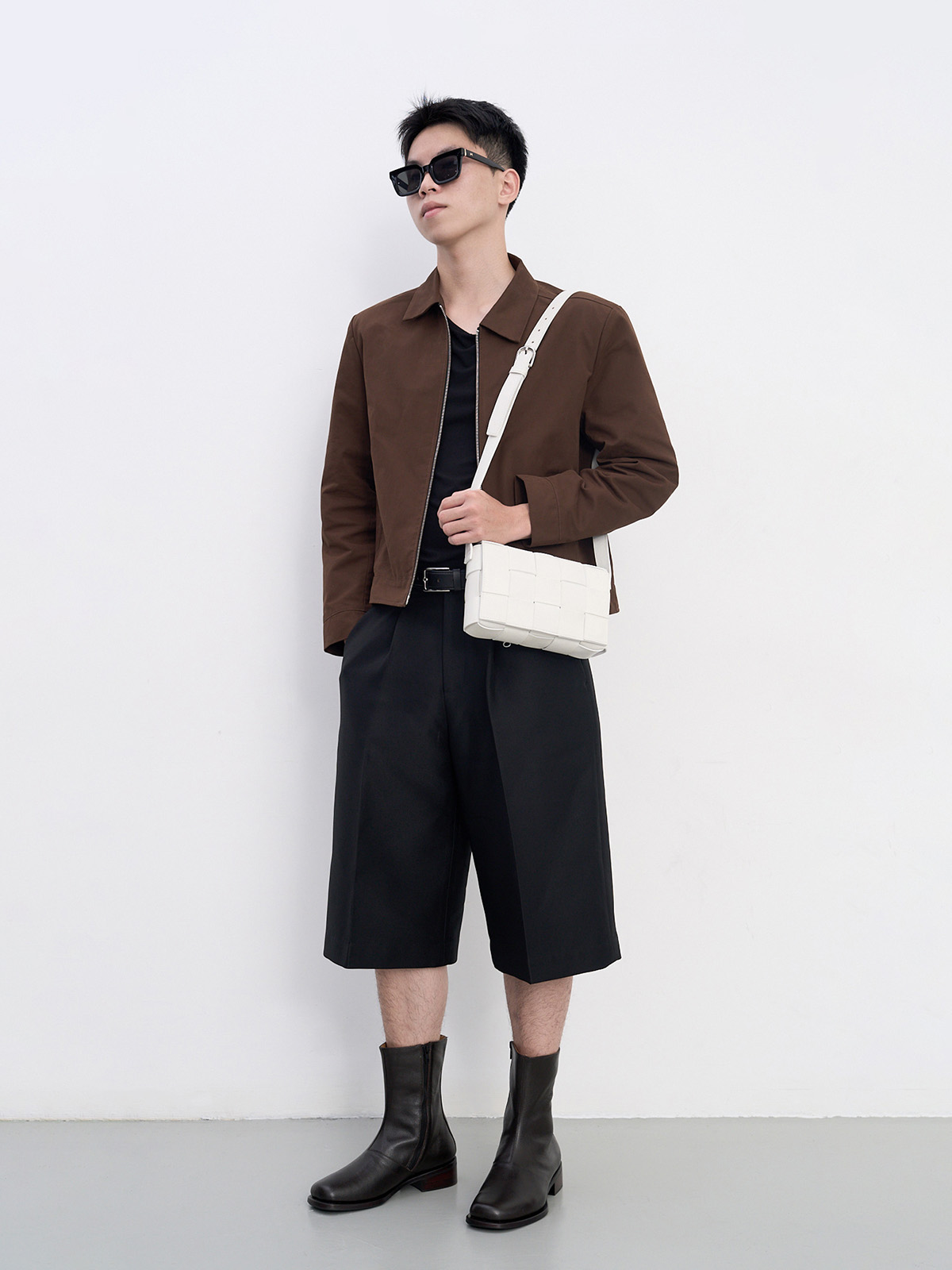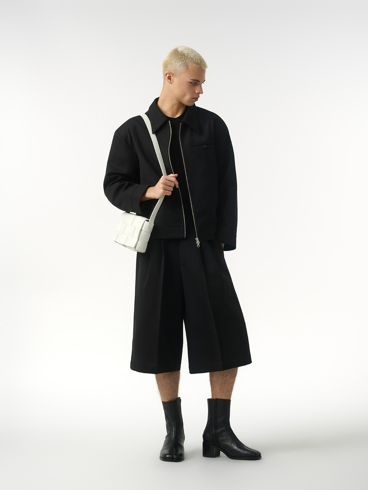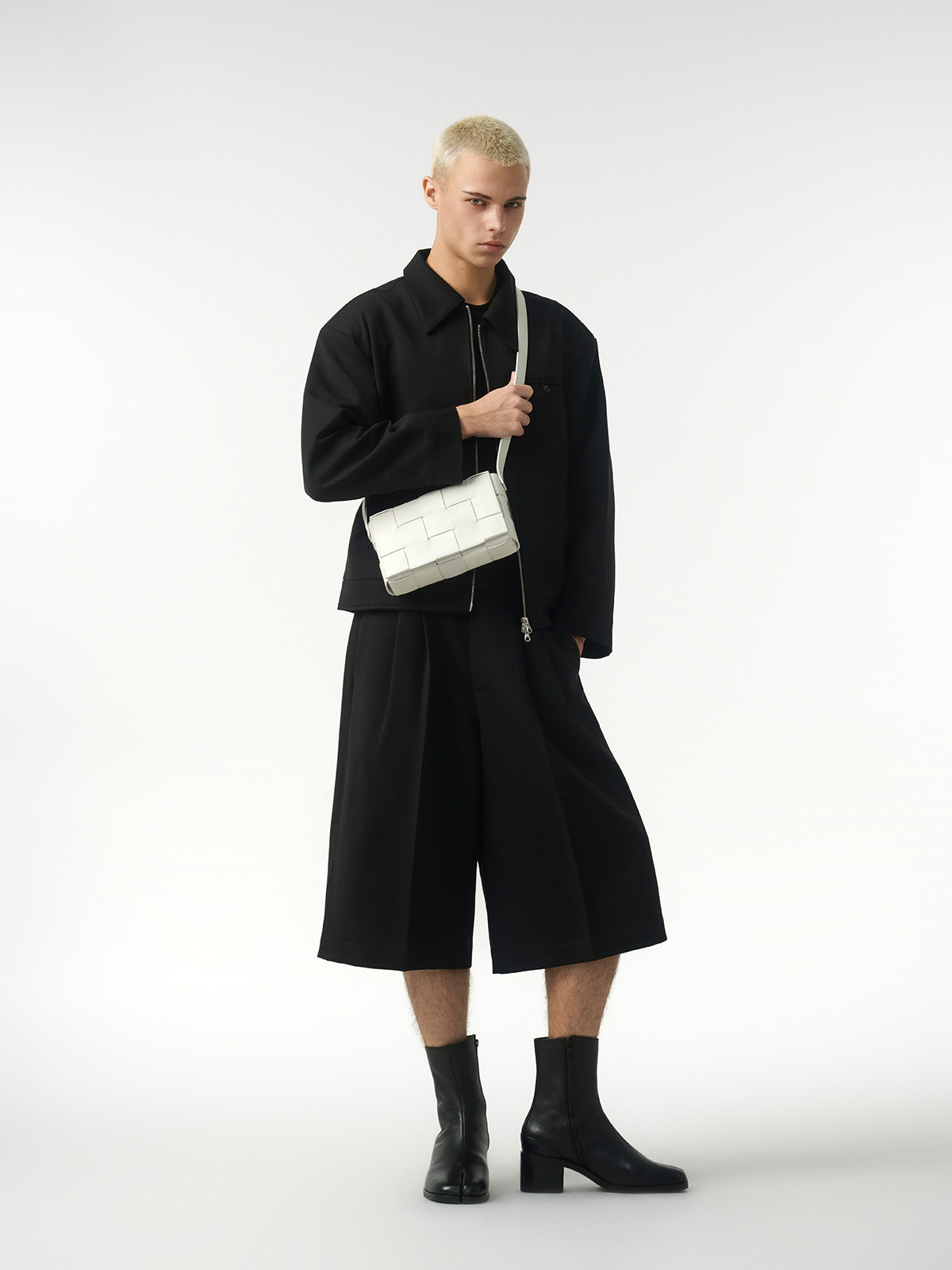 / INTERLAY LEATHER SHOULDER BAG IN WHITE