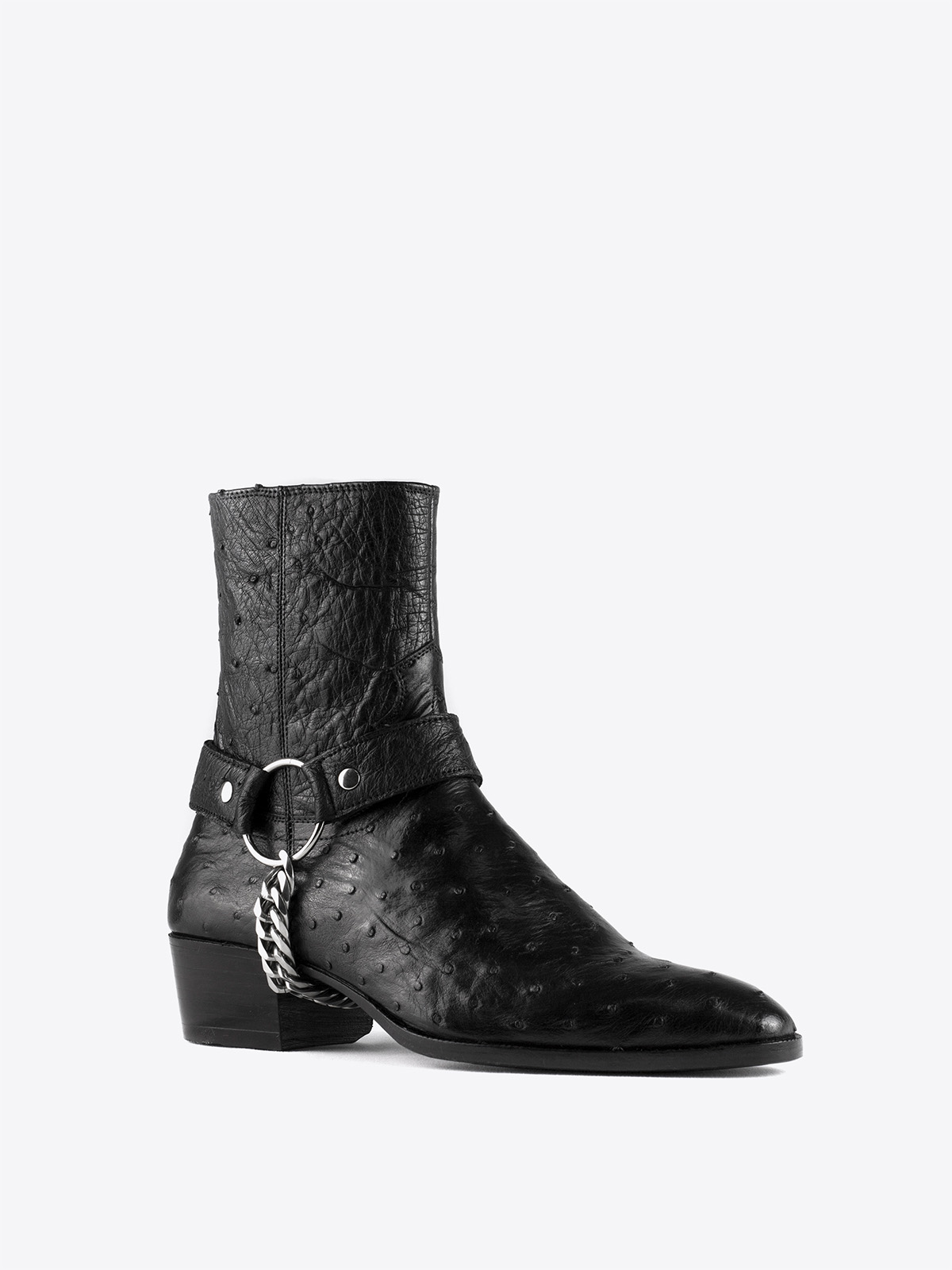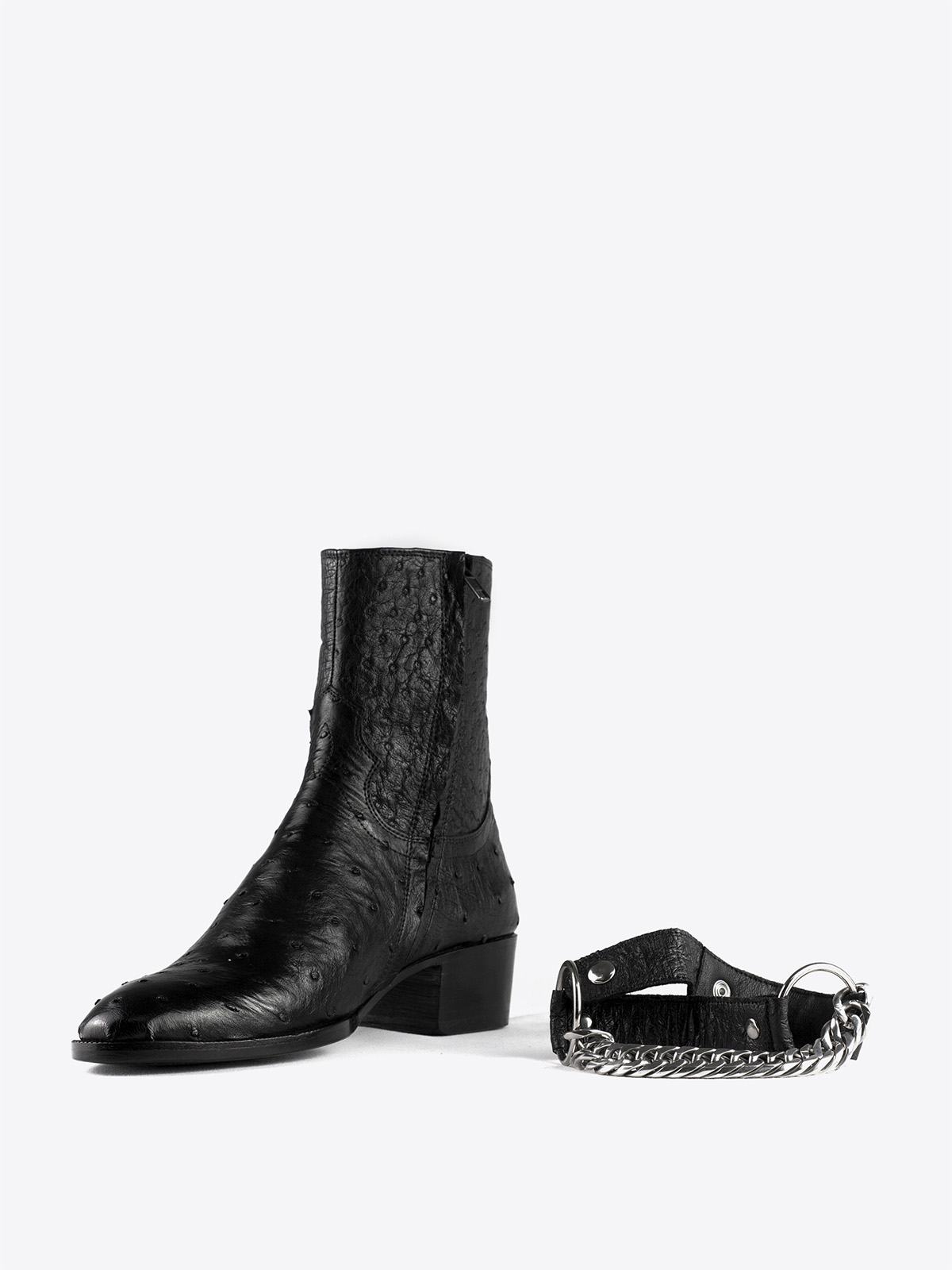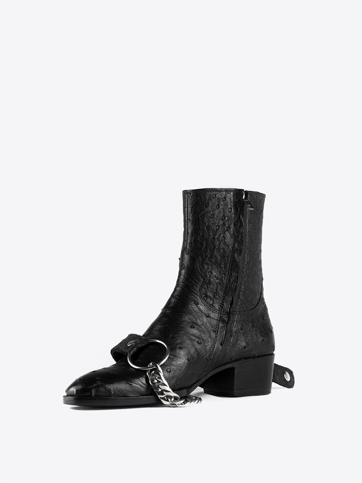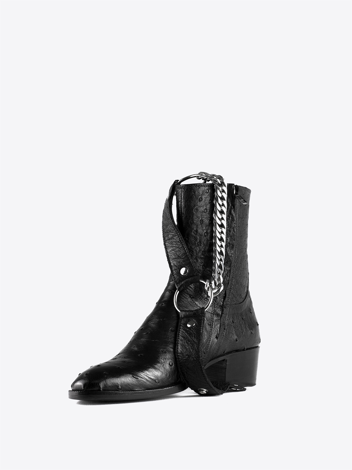 HARNESS CHAIN BOOTS IN OSTRICH LEATHER