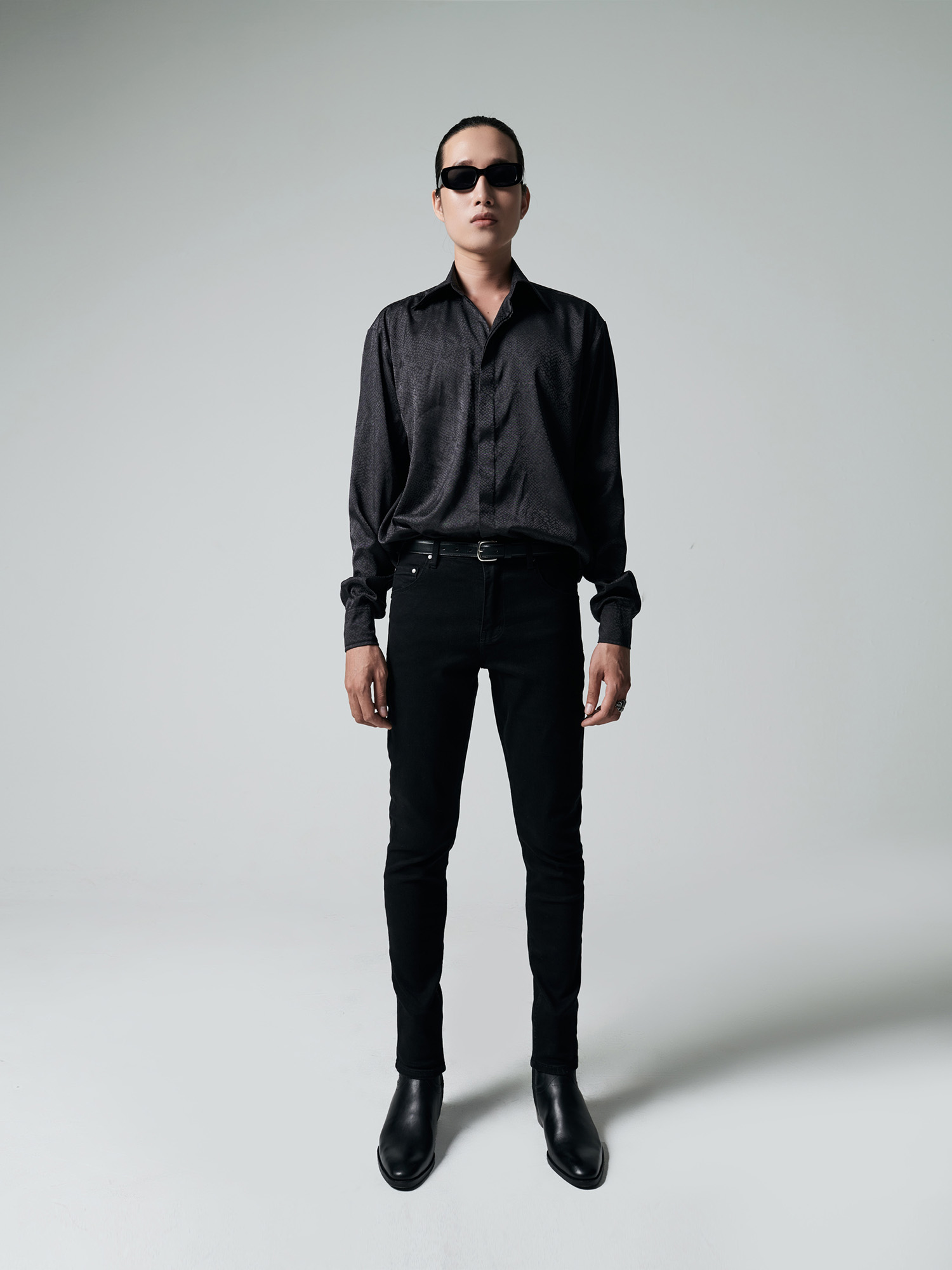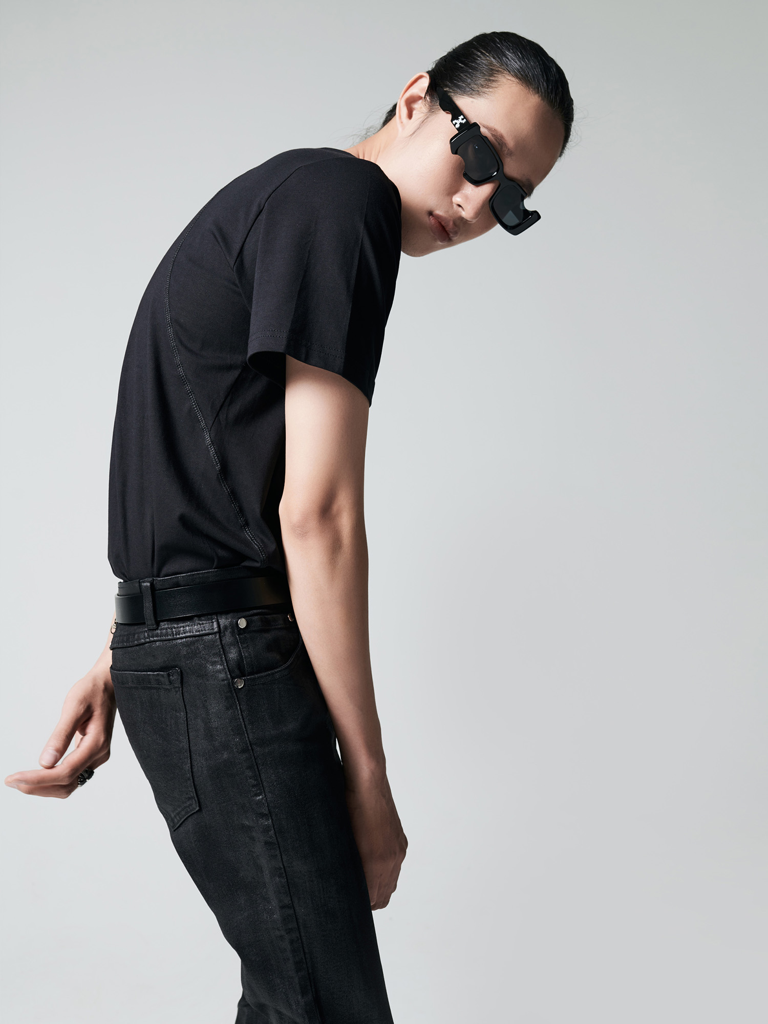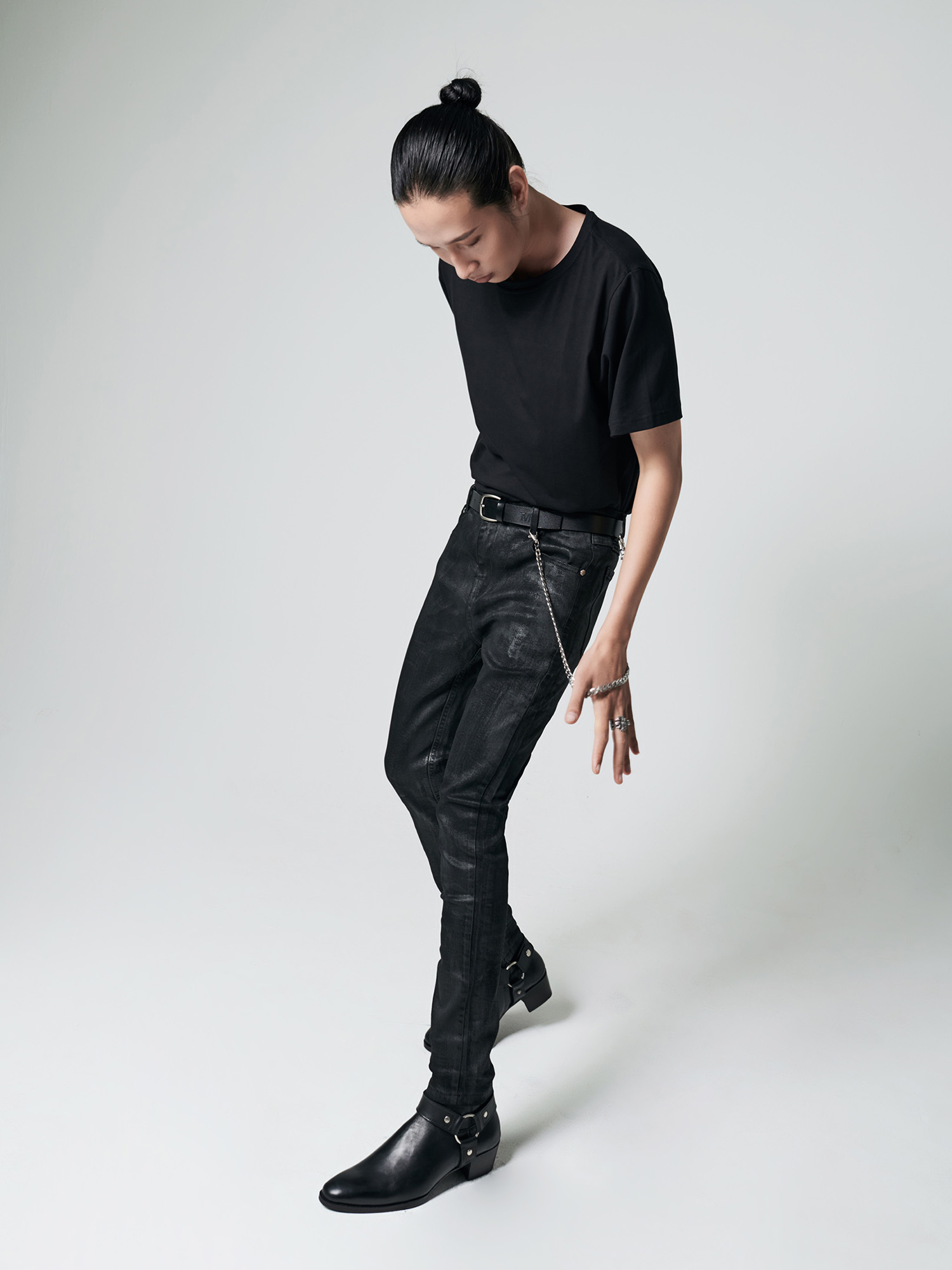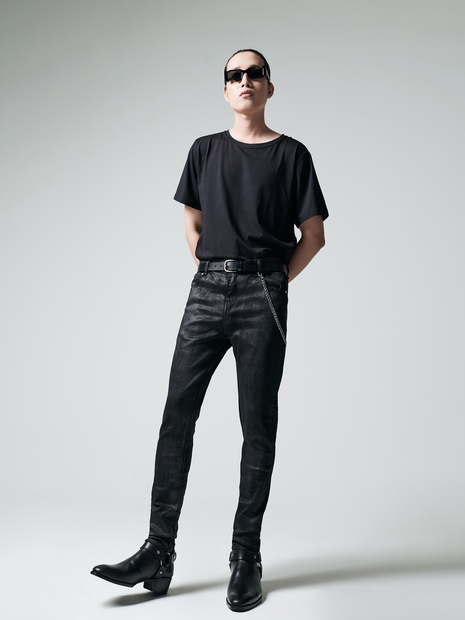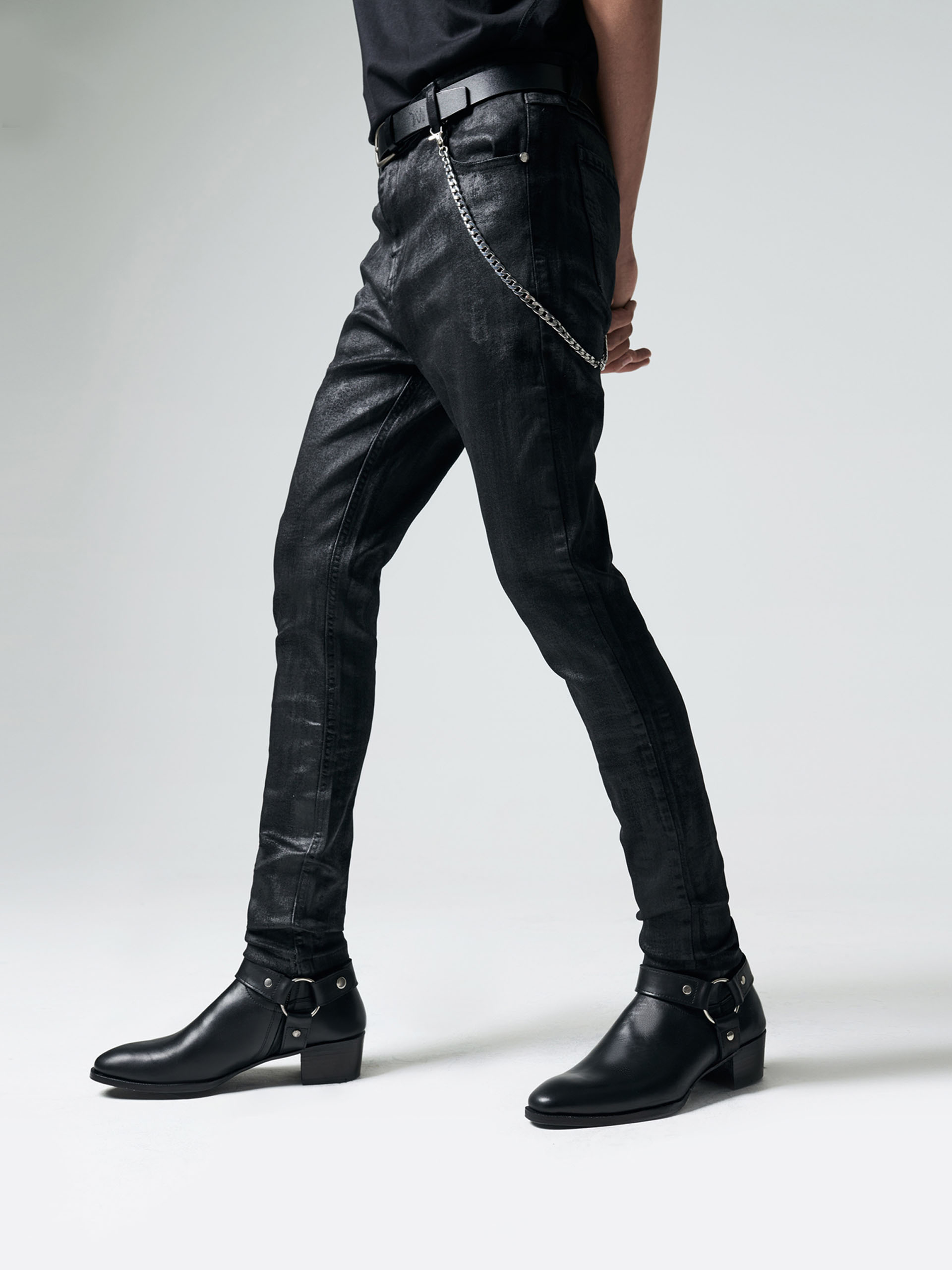 SKINNY JEANS IN WAXED BLACK DENIM