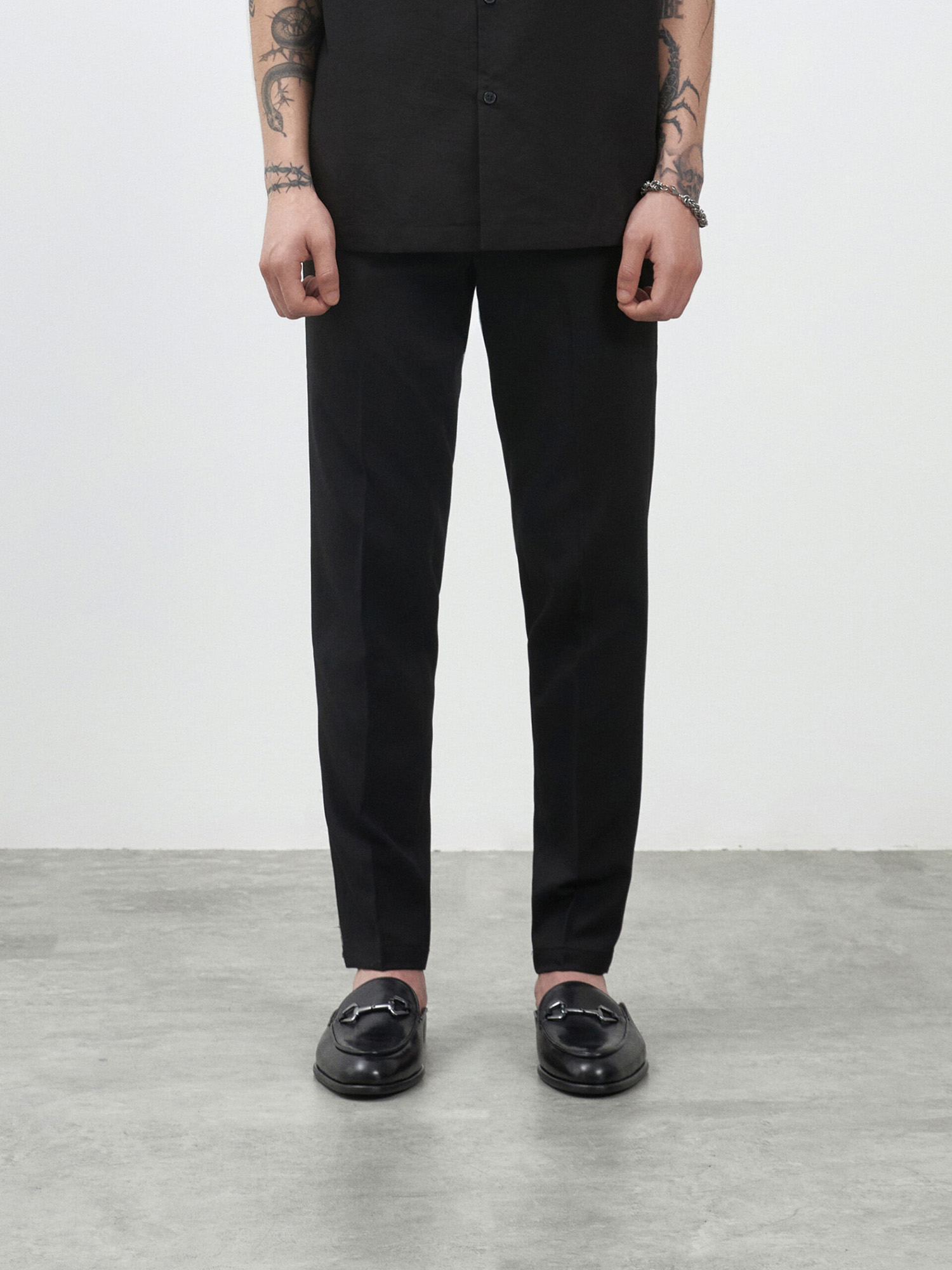 WIDE LEG TROUSERS WITH FRONT SEAMS IN BLACK