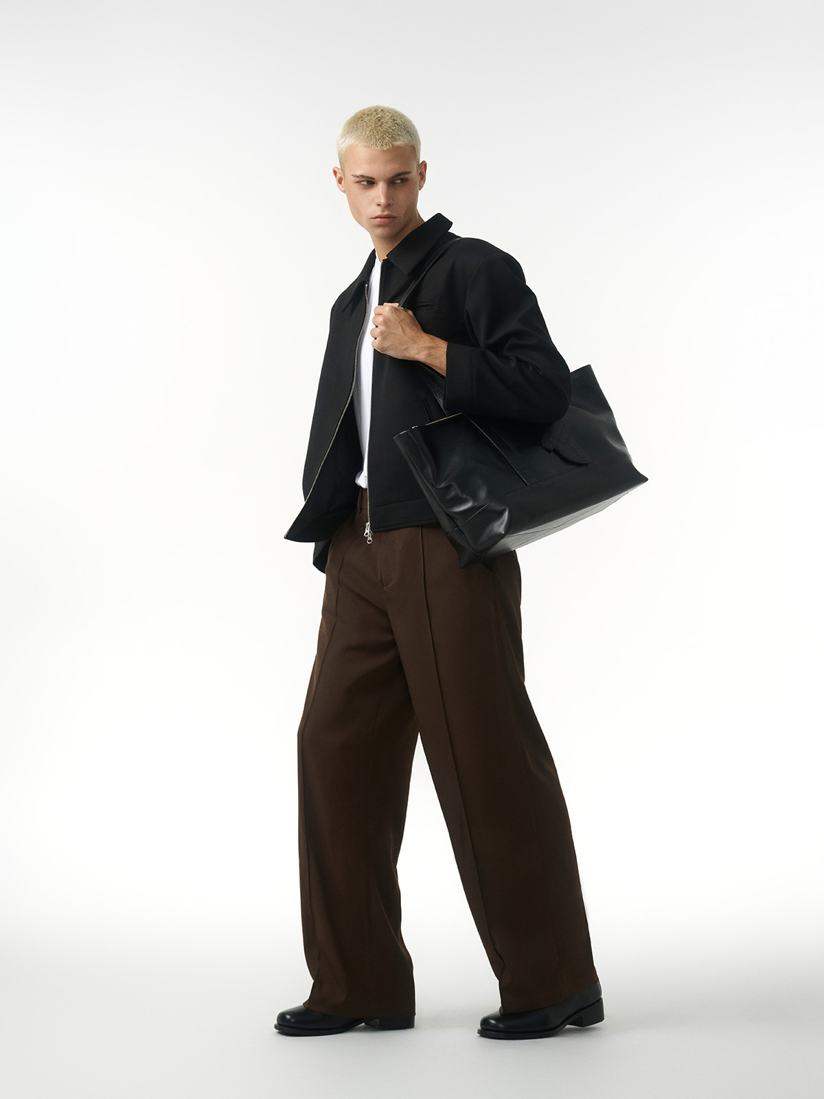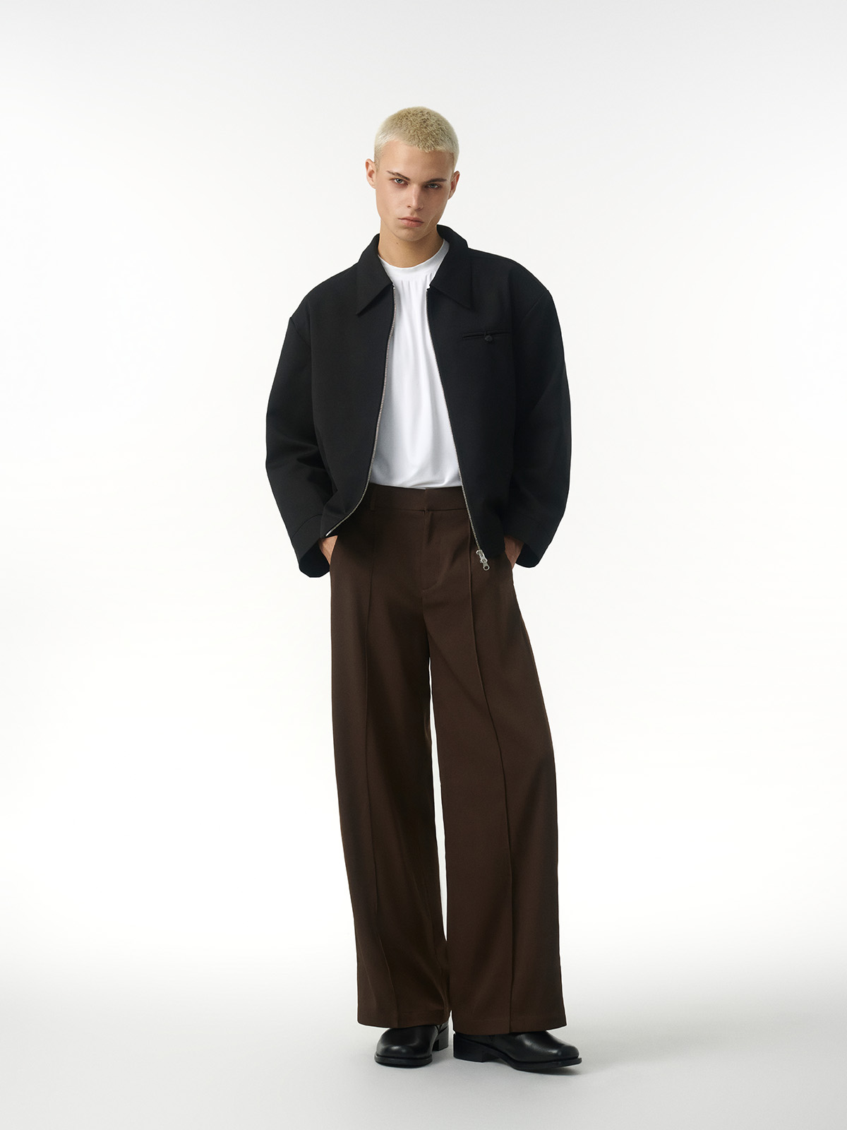 PLEATED WIDE LEG TROUSERS IN BLACK