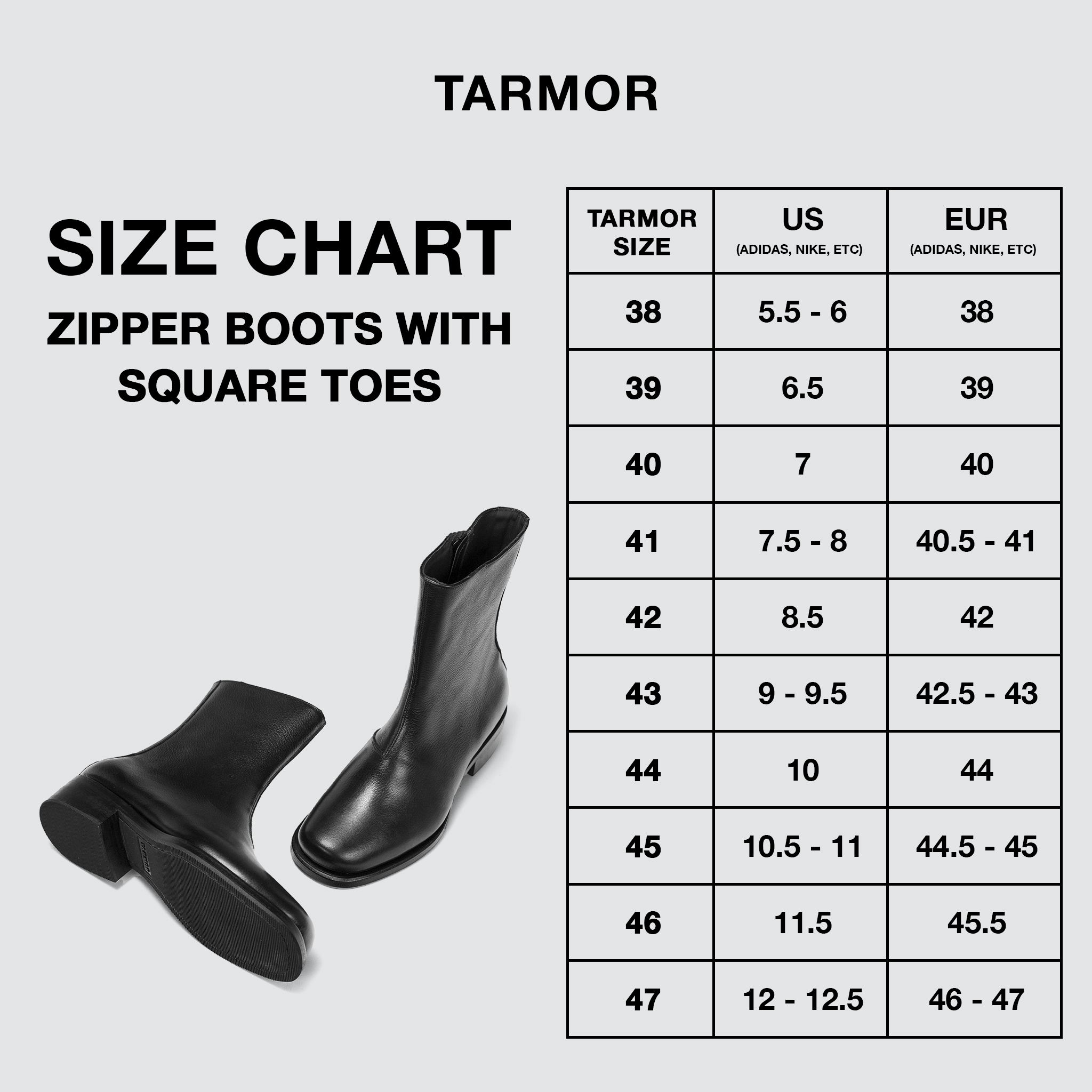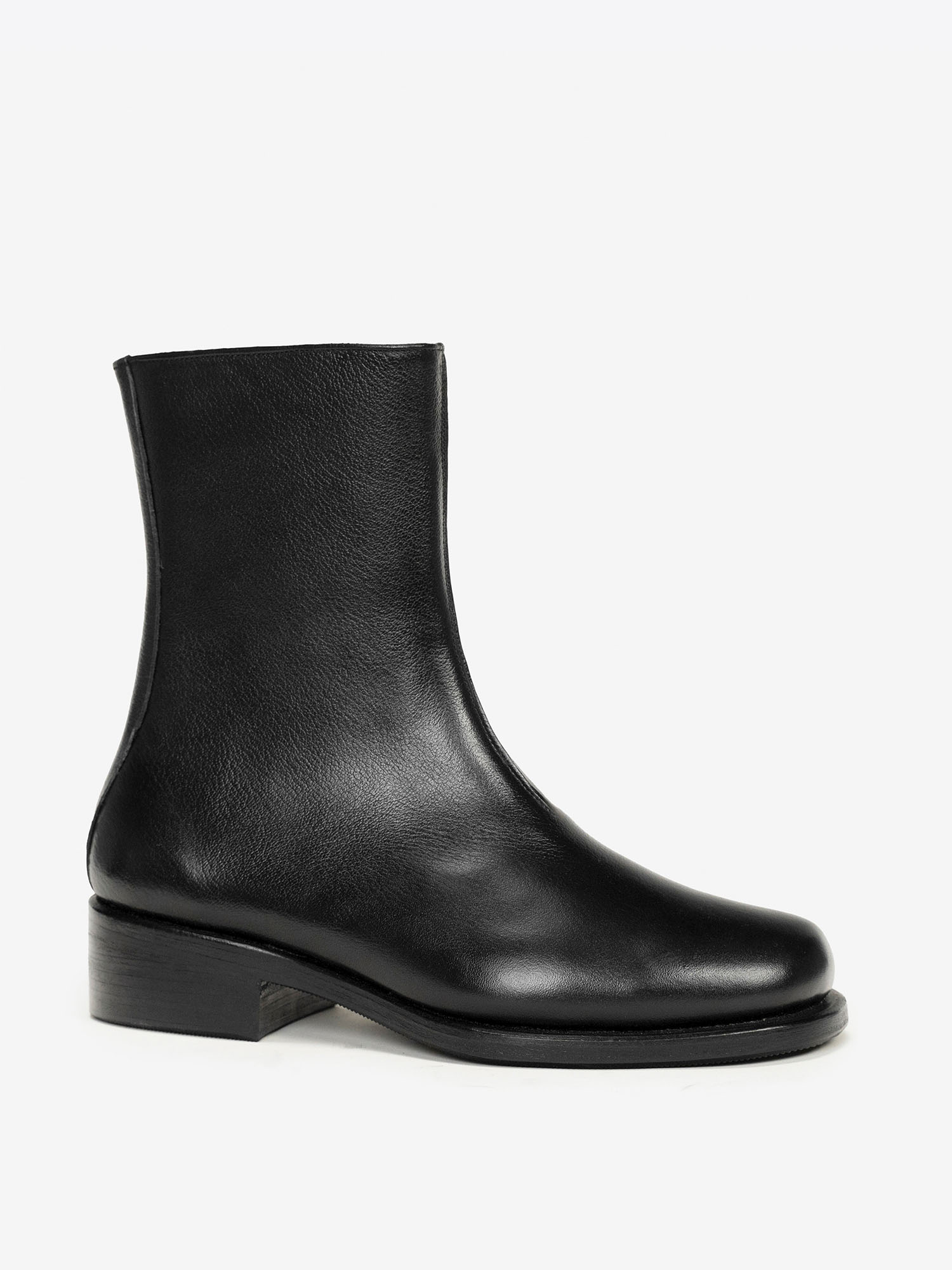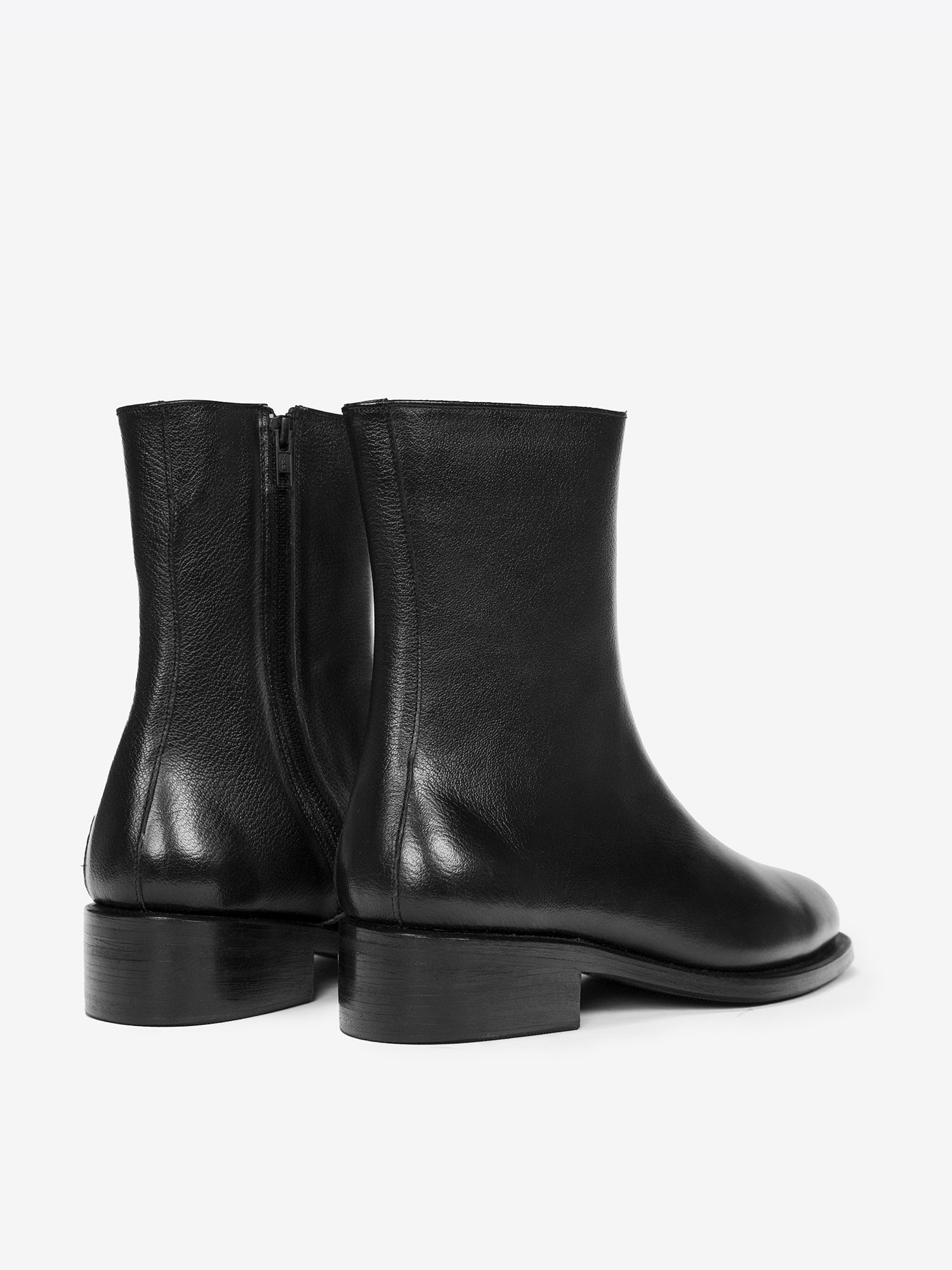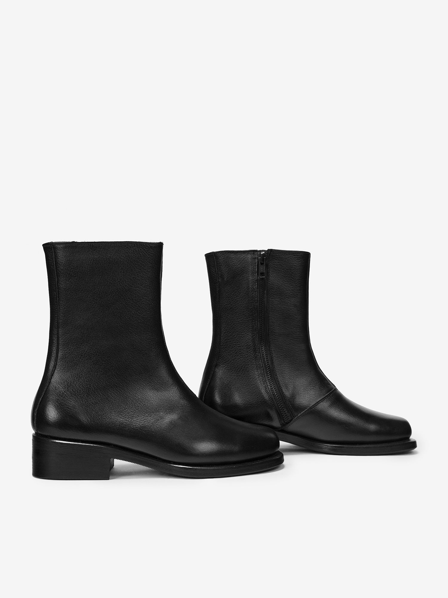 / ZIPPER BOOTS WITH SQUARE TOES IN ALRAN BLACK LEATHER