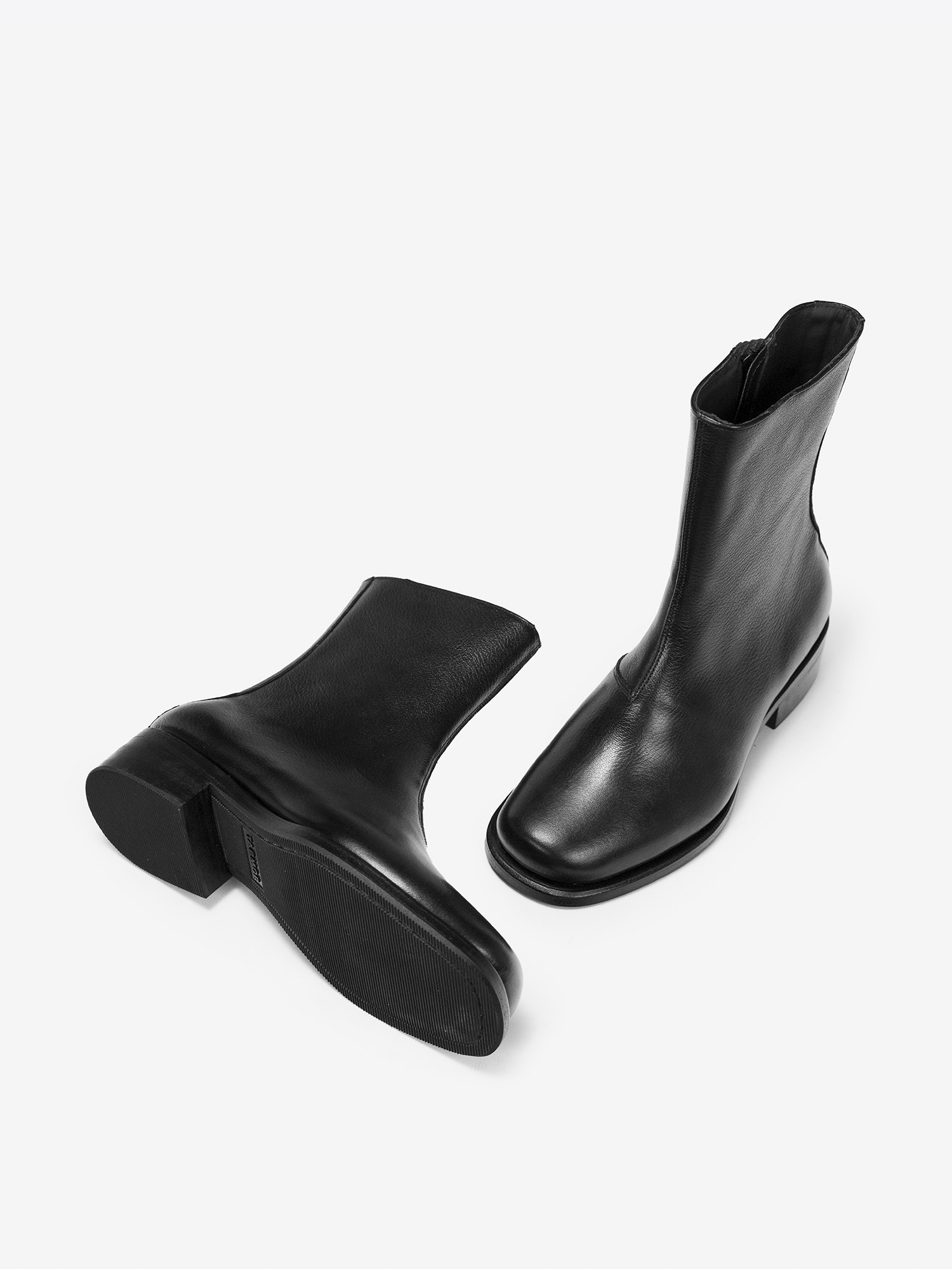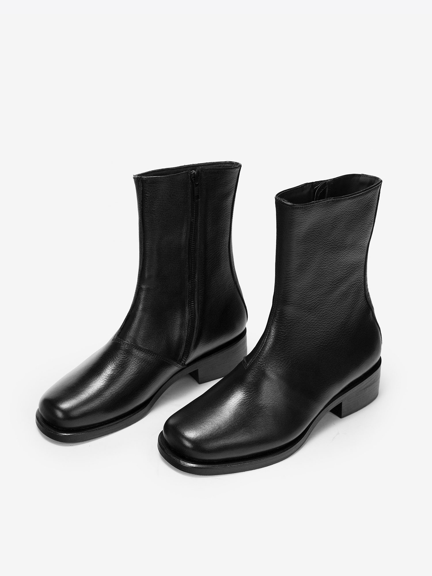 ZIPPER BOOTS WITH SQUARE TOES IN ALRAN BLACK LEATHER